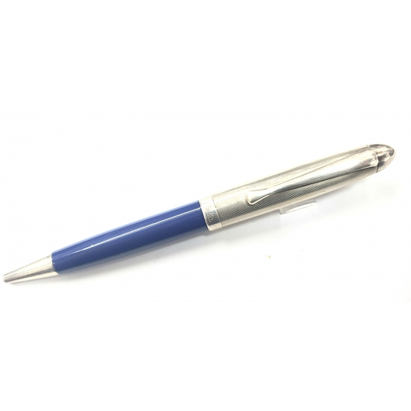 Esferográfica Delta Graffiti italiana em laca na cor azul com detalhes e a tampa em prata maciça.