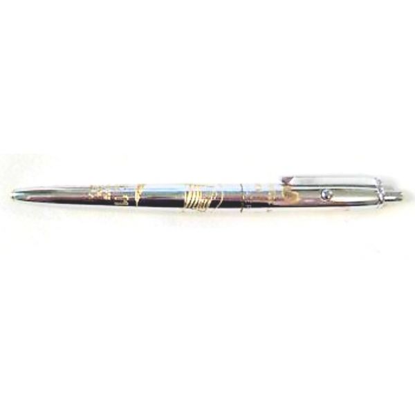 Esferográfica Fisher 25th anniversary Space pen. Em metal cromado com gravações em dourado.