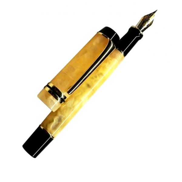 Caneta tinteiro Kaigelu 316 em resina na cor amarela marmorizada . Com a pena em metal dourada. Excelente Caneta e com garantia Ravil canetas por 12 meses.