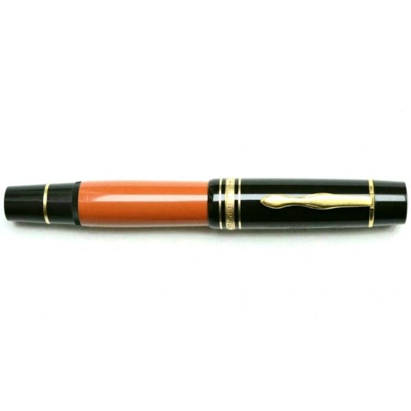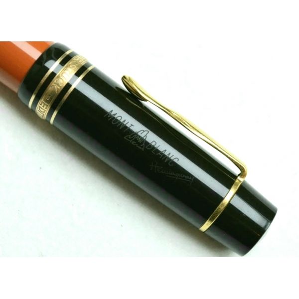 Caneta tinteiro Mont Blanc Ernest Hemingway em resina na cor laranja com a tampa na cor marrom. Com a assinatura do escritor .