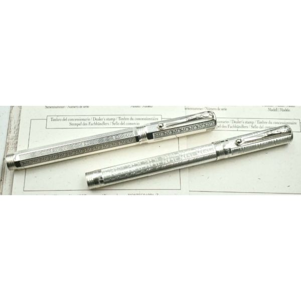 Conjunto de canetas tinteiros Montegrappa Romeu e Julieta em prata maciça , toda detalhada e com a pena em ouro maciço. Foram feitas 3500 jogos para o mundo inteiro em homenagem a clássica história de Shakespeare.