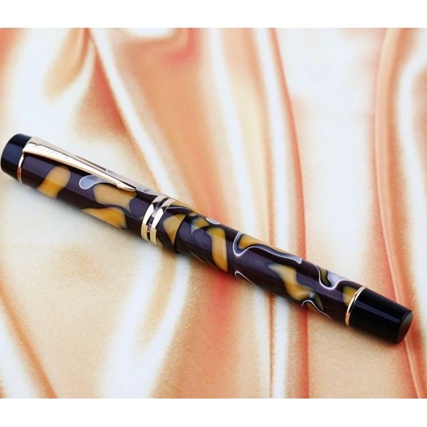 Caneta tinteiro Moonman M600 centennial em celuloide na cor amarelo, preta e branca. Com a pena em metal.