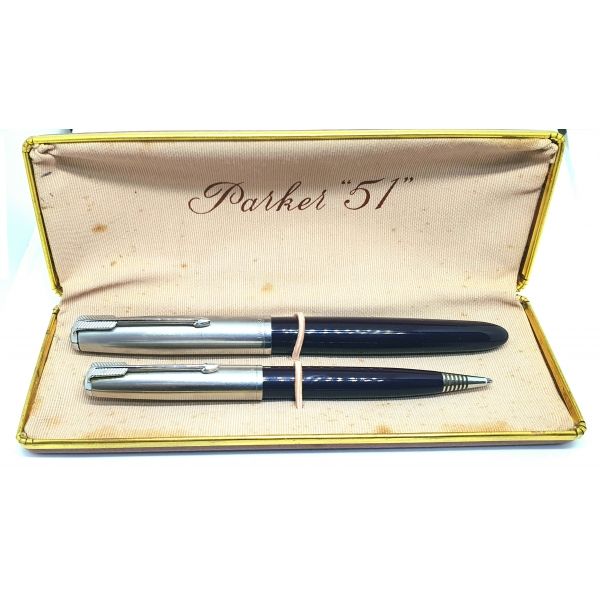 Jogo Parker 51 UVA ( PLUM ), a cor mais rara da Parker 51. Caneta em resina com a tampa em aço e a pena em ouro maciço. Lapiseira com o mecanismo 0,9mm.